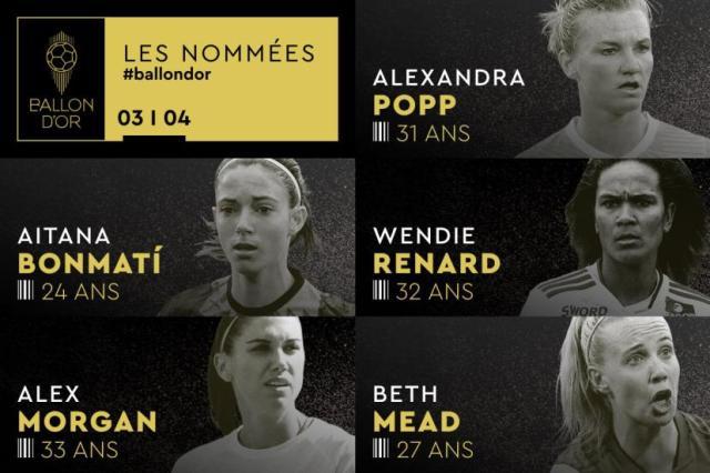 女足金球奖候选名单: